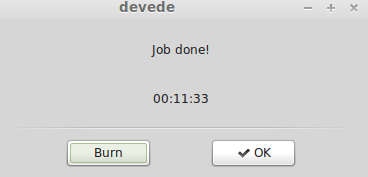 在DeVeDe创建完视频DVD后,下面这个对话框将呈现在我们眼前: