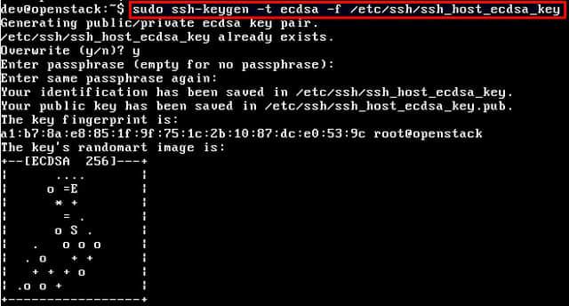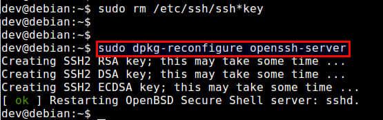 $ sudo rm -r /etc/ssh/ssh*key $ sudo dpkg-reconfigure openssh-server