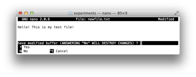 写下你想说的话,然后通过CTRL + X退出。在它问你是否保存的时候,当然键入"Y"。