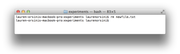 注意一下,rm命令非常强大!在黑客论坛里有个常用伎俩就是说服一个命令行新手输入rm -rf /,然后他就把自己整个电脑上的所有文件都删掉了。命令里的“/”意思是电脑的最高级根目录-所有一切都在它之下。千万不要输入那行命令!(LCTT 译注:希望你在看完这句话之前没有真的输入了 rm -rf / !!!)