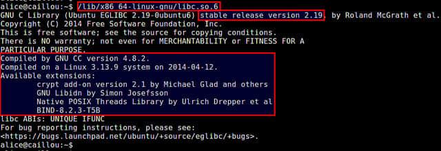 下面给出了命令行下检查GNU C库的简单命令。