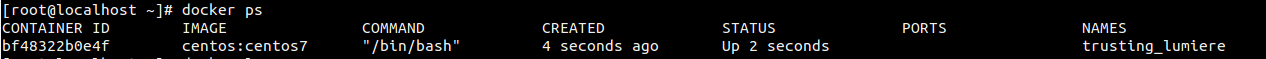 [root@localhost ~]# docker run -i -t centos /bin/bash [root@dbf66395436d /]#