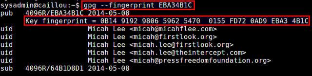 你会看到key的指纹字符串。把这个和网站上显示的指纹做对比。如果匹配,你可以选择信任这个文件拥有者的公钥。