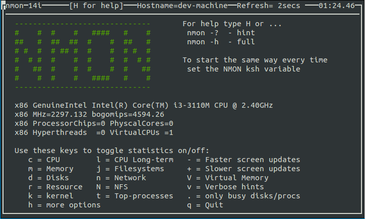 Nmon是Nigel's Monitor缩写,它最早开发用来作为AIX的系统监控工具。如果使用在线模式,可以使用光标键在屏幕上操作实时显示在终端上的监控信息。使用捕捉模式能够将数据保存为CSV格式,方便进一步的处理和图形化展示。
