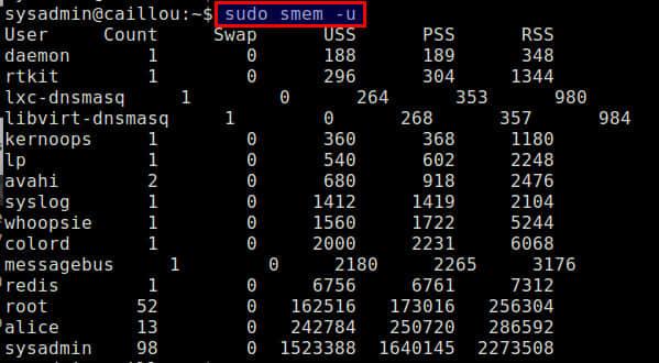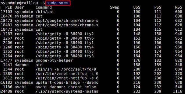 如有你想得到整个系统中所有用户的内存使用情况,就需要使用root权限来运行smem。