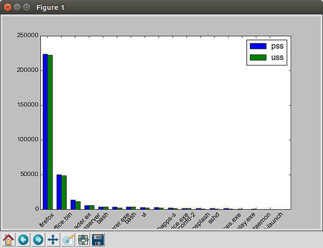 这个例子会生成一张饼图,图中显示了系统中各进程的PSS内存使用量: