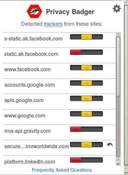电子前线基金会出品的Privacy Badger是一款优秀的反跟踪与反间谍广告的拦截工具。现在的网页内容来源可谓五花八门:广告服务器、评论服务器、图片工场、第三方登陆服务器,以及其它种种不一而足。