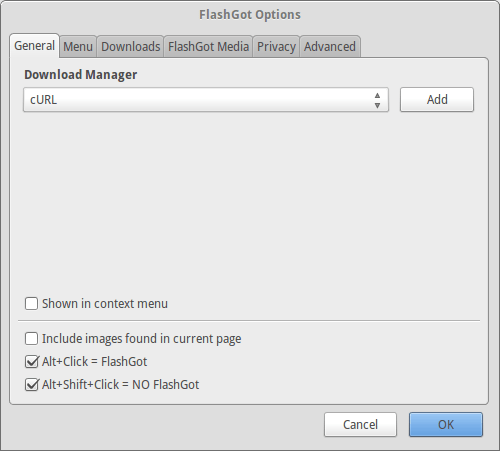 - FlashGot Link会使用默认下载管理器下载当前鼠标选中的链接