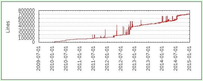 在这一年的最后, systemd 的代码达到了 719,348 行。