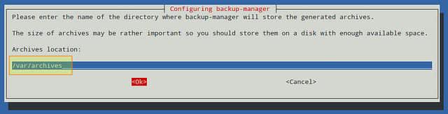 在基于Debian的系统中安装时,会提示你输入要存放备份归档文件的目录。如果选择的目录不存在,那么当你首次运行备份管理器时它会自动创建。