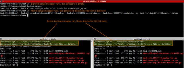正如你在上面图片中看到的那样,备份管理器在运行的时候创建了一个名为/root/.back-manager_my.cnf的文件,MySQL密码通过BM_MYSQL_ADMINPASS指定。那样,mysqldump可以验证到MySQL服务器,而不必在命令行以明文格式接受密码,那样会有安全风险。