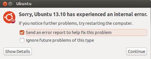 - "Sorry, Ubuntu XX.XX has experienced an internal error."