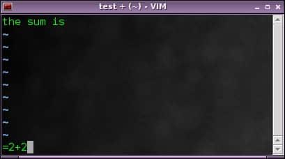 在插入模式下,你可以使用 Ctrl+r 键然后输入 =,再输入一个简单的算式。按 Enter 键,计算结果就会插入到文件中。例如,尝试输入: