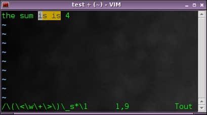 当你很快地打字时,很有可能会连续输入同一个单词两次,就像 this this。这种错误可能骗过任何一个人,即使是你自己重新阅读一遍也不可避免。幸运的是,有一个简单的正则表达式可以用来预防这个错误。使用搜索命令(默认时 /)然后输入: