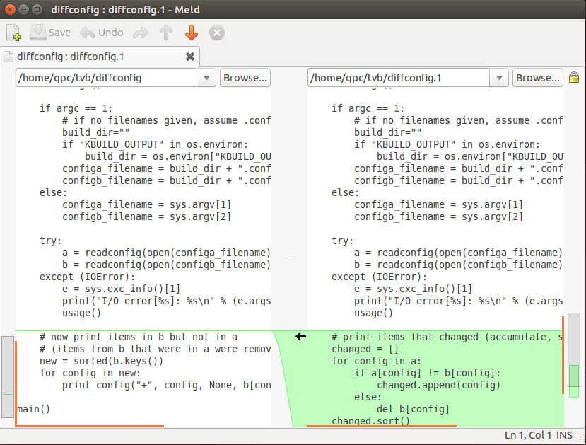Meld是一个适用于Gnome桌面的、开源的、图形化的文件差异查看和合并的应用程序。它支持2到3个文件的同时比较、递归式的目录比较、处于版本控制(Bazaar, Codeville, CVS, Darcs, Fossil SCM, Git, Mercurial, Monotone, Subversion)之下的目录比较。还能够手动或自动合并文件差异。
