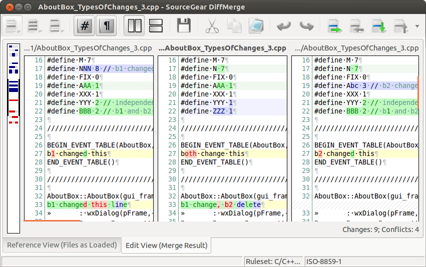 这个程序是个非常重要的软件开发工具。他可以图形化的显示两个文件或目录之间的差别,合并有差异的文件,其也用于那些预览和备注文件改动的产品上(比如,在源代码合并到源文件树之前,要先接受源代码的改变)