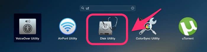 要格式化 USB 盘,请先插入 USB 盘。从 Launchpad(在底部面板上的一个火箭形状的图标)上前往磁盘工具应用程序。