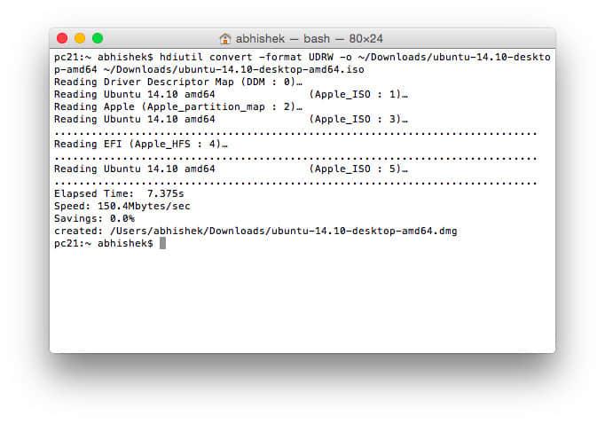 hdiutil convert -format UDRW -o ~/Downloads/ubuntu-14.10-desktop-amd64 ~/Downloads/ubuntu-14.10-desktop-amd64.iso