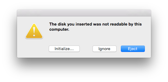 一旦 DD 命令处理完成,会弹出一个对话框:您插入的磁盘在这机器上不可读。