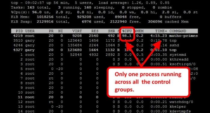那么,现在我们就启动第二个 matho-primes 进程,这一次我们在 lesscpulimited 控制组中来启动它: