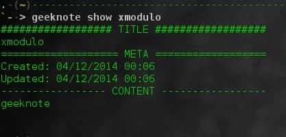 上面的命令中,只有‘title’是必须的,它会与一条新笔记的标题相关联。其他的标注可以为笔记添加额外的元数据:添加标签来与你的笔记关联、指定放在那个笔记本里。同样,如果你的标题或者内容中有空格,不要忘记将它们放在引号中。
