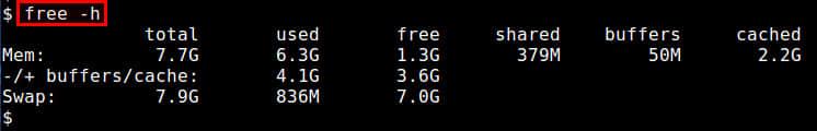 free命令是一个用来获得内存使用概况的快速简单的方法,这些信息从“/proc/meminfo”获取。它提供了一个快照,用于展示总计/闲置的物理内存和系统交换区,以及已使用/闲置的内核缓冲区。
