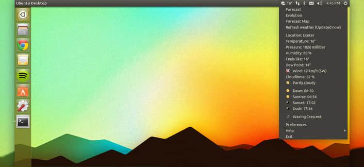 在Ubuntu桌面中有各种提供天气信息的方法,你可以使用Unity Dash和桌面应用来获得天气信息,比如Typhoon。
