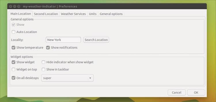 My Weather Indicator无法从Ubuntu软件商店中直接获取。不过开发者为我们提供了.deb安装包和官方维护的PPA(为Ubuntu 14.04 LTS和14.10提供安装包)。