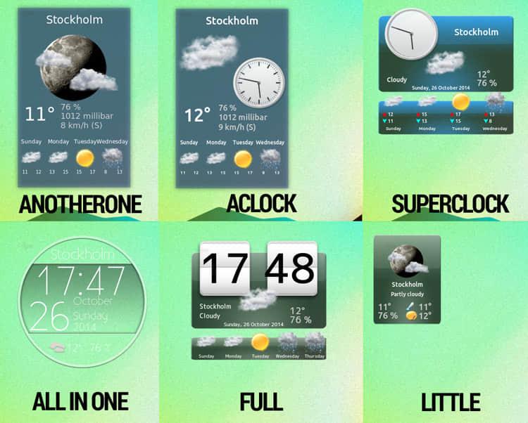 在“小部件设置”区域勾选“显示桌面小部件”选项就会在你的桌面上添加一个小的天气小部件。小部件提供许多不同的皮肤,所以你一定要精心挑选你最喜欢的一个(注释:点击“确定”后对小部件的更改才会保存)。