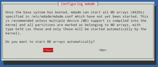 Debian系统中,需要在/etc/default/mdadm 设置 AUTOSTART 变量为 true 才能使mdadm守护程序在开机时自动加载阵列: