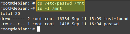 现在我们的阵列已经可以访问了,拷贝文件/etc/passwd到/mnt中测试一下:
