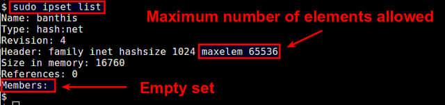 $ sudo ipset create banthis hash:net maxelem 1000000