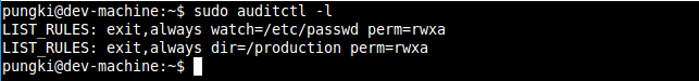 现在,运行 auditctl -l 命令即可查看所有已配置的规则。