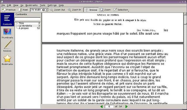 除了Qt应用程序,如果安装了EPUB库的话,KDE的文档阅读器Okular 也能打开EPUB文件。尽管如此,如果你不是个KDE用户的话,不推荐这个软件。