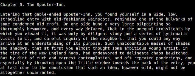 如果你只是想快速简单的查看EPUB文件的内容,不关心任何图形化界面功能的话,最好使用命令行模式打开EPUB。epub 是一个用Python编写的阅读器,可以在终端环境读取EPUB文件的内容。软件可以在章节、页面间切换,没有其他的功能。这是最简洁的EPUB阅读器了。