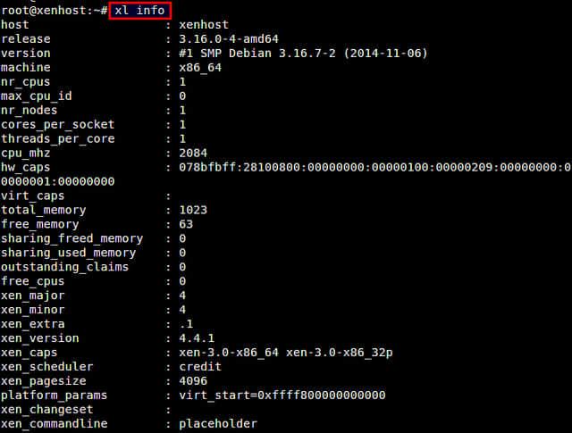 将会显示很多关于 Xen 主机的信息。
