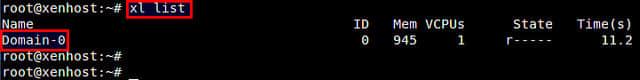 Xen 虚拟机监视器带有一个管理 Xen 的命令行程序叫做 xl,可以用来创建和管理 Xen 虚拟机。使用 xl 命令来检查 Xen 是否成功安装了。