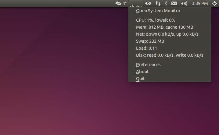 但至今为止,我最喜爱的应用是系统监控指示器(也被叫做多负载指示器),它可从 Ubuntu 软件中心获得。它也有着大量的配置选项。