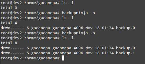 步骤 2:在 backupninja 第一次运行之前,上层目录(这个例子中指的是 /home/gacanepa) 是空的。第一次我们执行下面的命令:
