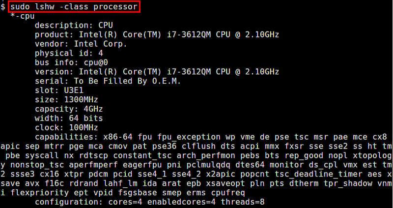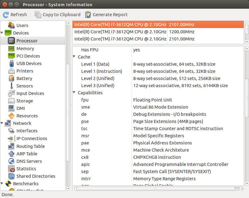 根据你的需要,有各种各样的关于你的CPU处理器信息你需要了解,比如CPU供应商名、模型名、时钟频率、插槽/内核的数量, L1/L2/L3缓存配置、可用的处理器能力(比如:硬件虚拟化、AES, MMX, SSE)等等。在Linux中,有许多命令行或基于GUI的工具就能来展示你的CPU硬件的相关具体信息。