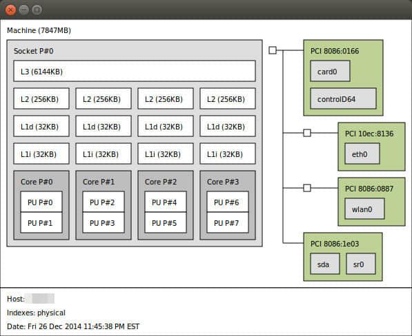lstopo命令 (包括在 hwloc 包中) 以可视化的方式组成 CPU、缓存、内存和I/O设备的拓扑结构。这个命令用来识别处理器结构和系统的NUMA拓扑结构。