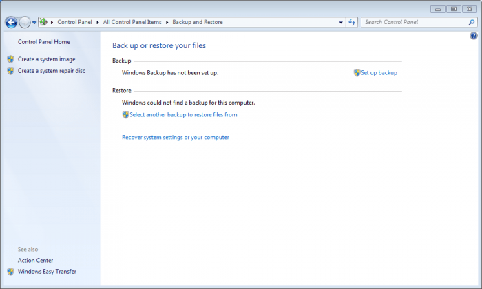 按下“开始”按钮,搜索“备份和还原”。点击出现的图标。