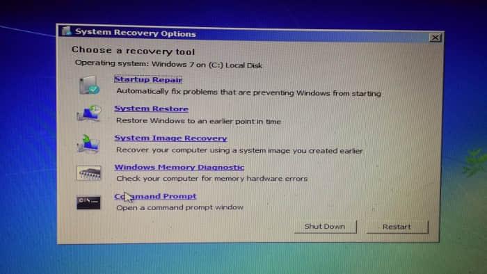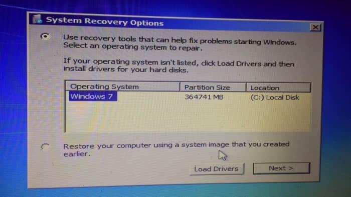 现在你将会看到一个有修复硬盘和恢复您的系统等选项的界面。