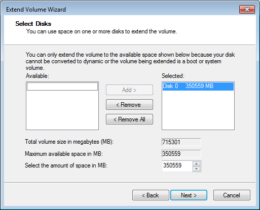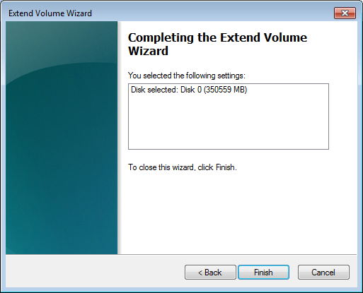 最后一步是扩展Windows以便于将它再变成一个大的分区。