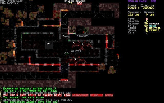 - 增加了许多针对 NetHack 的增强,如额外的怪兽、更多的关卡、许多新的元素、更多的危险、更具挑战性的游戏,以及最重要的,相比普通的 NetHack,它更具娱乐性;