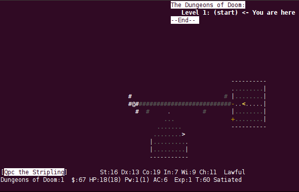 在 NetHack 中,你扮演凶猛的战士、巫师或许多其他职业中的一种,一路战斗着,为你的神灵获取 Amulet of Yendor(可以说这是一个倒退!)。在这个过程中,你可能会遇到一个或两个 quantum mechanic(LCTT 译注:从这里得知,这指的是一种怪兽),或者可能遇到一个小型的太空舰队,抑或是 —— 假如你足够幸运会遇到 —— Ravenous Bugblatter Beast of Traal。(LCTT 译注:我参考了这里)。