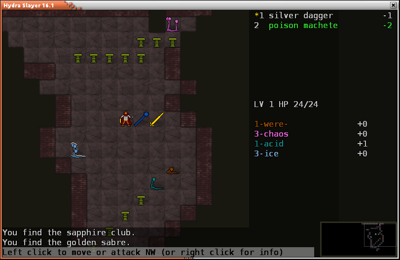 Hydra Slayer 是一个专注于杀死九头蛇的开源 Roguelike 游戏。它受到了希腊神话、地下城探险、MathRL seven day roguelike ,和一些关于勇者杀死多头野兽的数字谜题等启发。