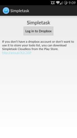 然后,你得去下载 Simpletask Andriod app。这是免费的应用。安装它。当你第一次运行 Simletask 的时候,你会被要求关联你的账号到 Dropbox: