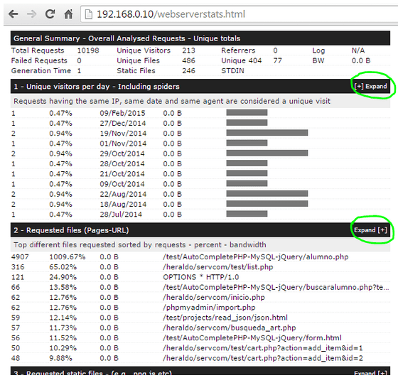 # zcat -f /var/log/apache2/access.log* | goaccess > /var/www/webserverstats.html