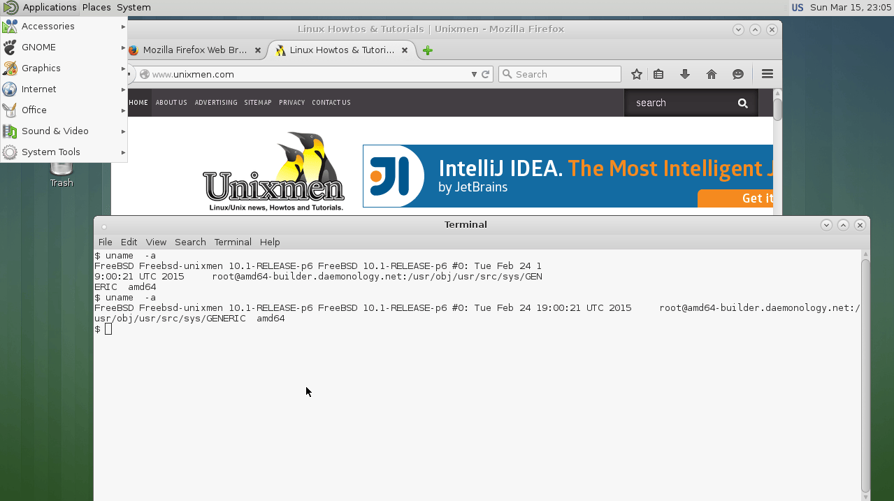 root@Freebsd-unixmen:~ # uname -a FreeBSD Freebsd-unixmen 10.1-RELEASE FreeBSD 10.1-RELEASE #0 r274401: Tue Nov 11 21:02:49 UTC 2014 root@releng1.nyi.freebsd.org:/usr/obj/usr/src/sys/GENERIC amd64 root@Freebsd-unixmen:~